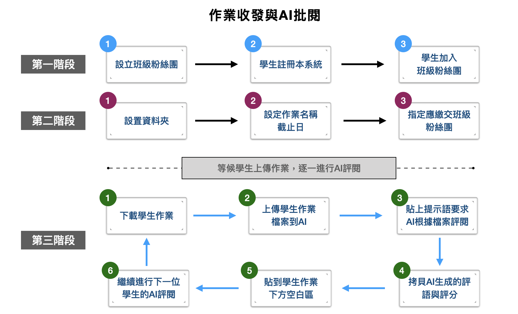 ☑️ 新增傳送門、設定傳送期限、指定粉絲團☑️ 模擬學生利用傳送門傳送作業☑️ 模擬老師批閱作業 (人工與AI批閱)